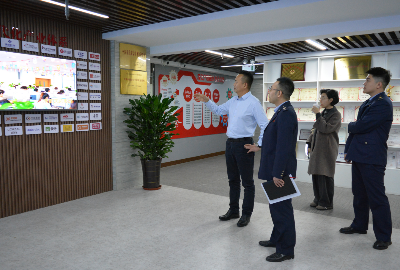 会前,两部门相关负责人还参观了企业党建带群建长廊、企业产品展厅,详细了解了滨海迅腾集团研发的系列产品和商业模式。